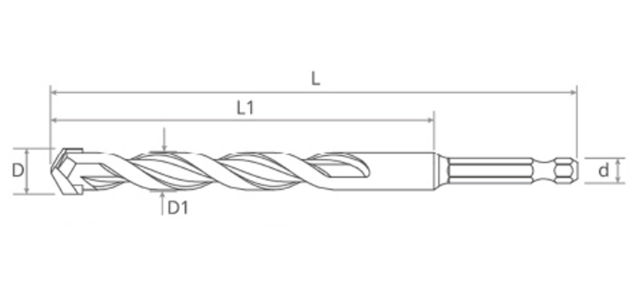 Kepala karbida yang kuat dan berkualitas tinggi menghasilkan pengeboran cepat pada material batu bata, beton, dan batu.