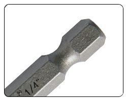 Shank segi enam memungkinkan penggunaan pada penabrak dan bor/penggerak palu untuk menambah keserbagunaan.